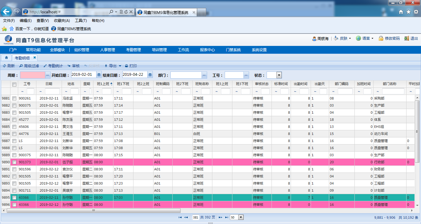 2.同鑫人力資源管理系統上線情況:上線模塊有,人事/事務/考勤/門禁/消費/報表等